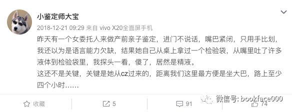 @小鉴定师大宝,原名戴维,是一名DNA亲子鉴定师,2007年入行,工作了12年。经他手的委托有一万多件,三四千个家庭因为他的一纸鉴定报告而破碎。因此,别人给他取了个外号,叫「婚姻毁灭者」。