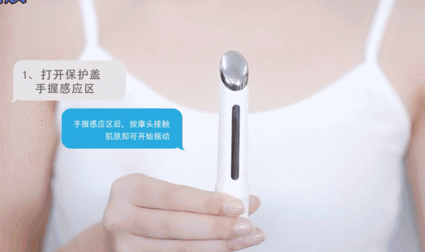 而且它没有开关,是智能感应的,只要将按摩头贴近眼部,就会自动震动,很省力。震动频率达到了183次/秒,比纯手动拍打不仅省力,还让眼霜更高吸收。