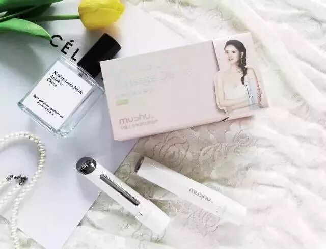 就是她手上拿的这个木薯美容仪,很小巧,可以随时随地给眼部、嘴唇甚至全脸按摩。