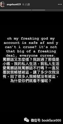 被气急的梧桐妹在自己的大号上(angelsun619)发飙,表示这是自己的小号,自己的私人生活,没有被盗号: