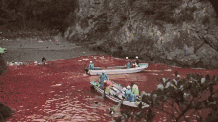 大规模的海豚捕杀,让海豚湾尸横遍野,蔚蓝的海水被染成鲜红。