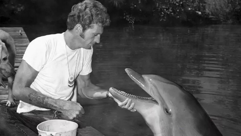 他驯养的海豚凯西,演过电影、可爱、通人性,在世界范围内都掀起了“海豚热”。