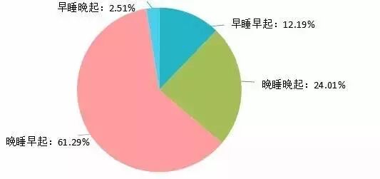 从8所学院中1300多份调查中,晚睡晚起人群占比:61.29%。