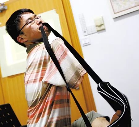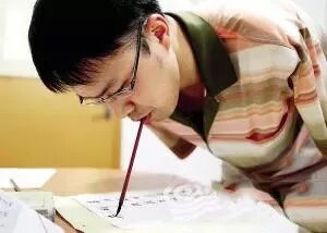 他的王体书法,是用嘴叼着笔写出来的。刚练习的时候,口水混着汗水,濡湿了一张张宣纸。