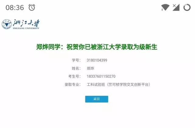 郑烨选择了浙江大学竺可桢学院(浙大最牛的尖子学院)。