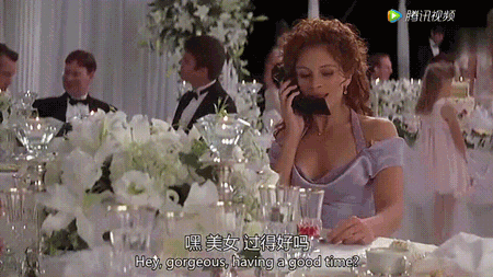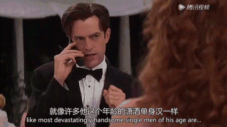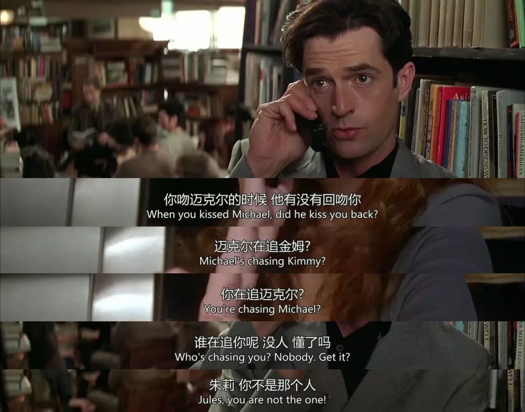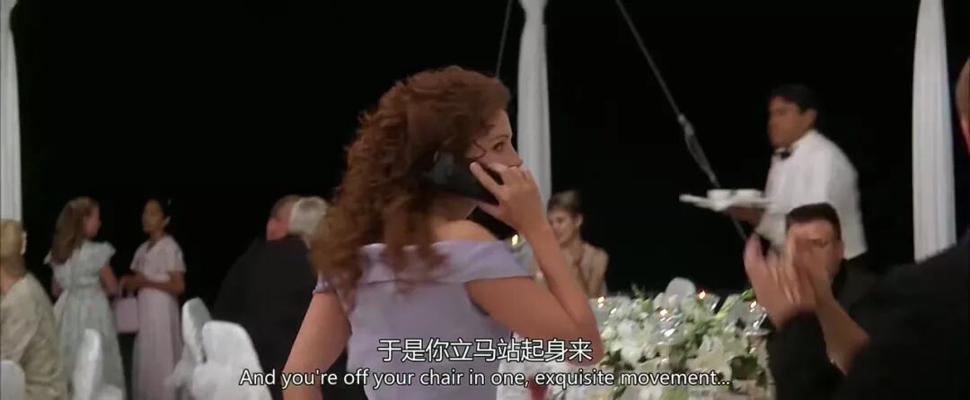 在此我发现一个细节:虽然直男Michael已经下定决心娶别人,但是听到自己“最好的朋友”也要结婚了,还是会吃醋和闷闷不乐。在这一段中,演员几个微小的表情处理得特别好。