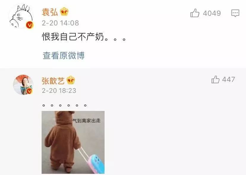 在张歆艺的微博下面,她的丈夫袁弘评论道: