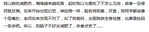 无独有偶,她们都提到了自己长期服用减肥药后的症状:简直像吸..毒了一般!