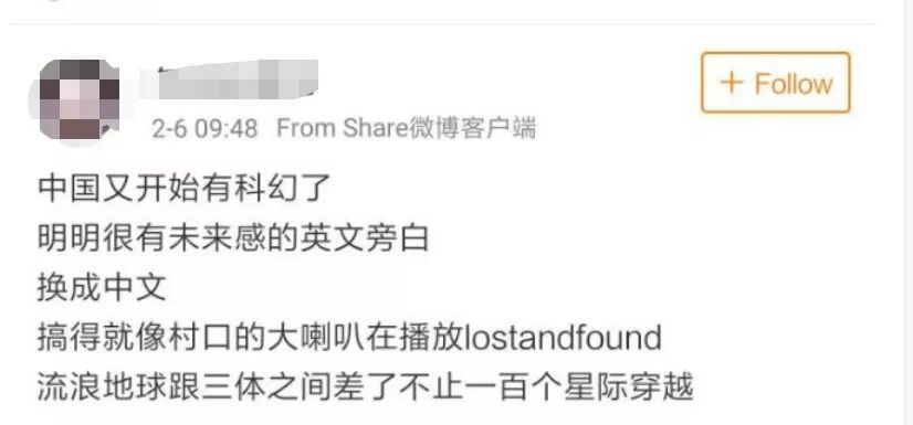 还有人说,中国科幻不好,就是因为没有说英语,因为英语比较有科技感,换成中文就像是村口的大喇叭。