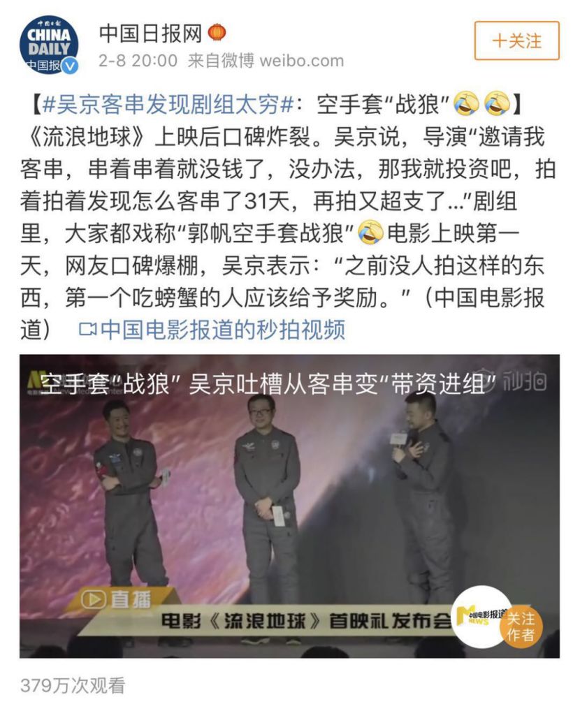 - 《流浪地球》大火后,吴京被十万条脏话骂上热搜!