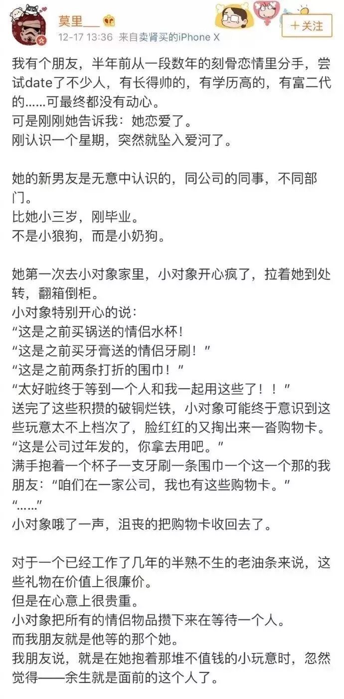 直到前几天刷到@莫里这条微博,脸上全程挂着老母亲般慈祥的微笑:跟小奶狗谈恋爱也太太太甜了吧!