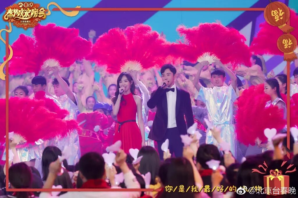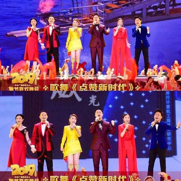 一首歌的时间里,两人的手全程紧紧牵在一起,这个年过得真是有点甜: