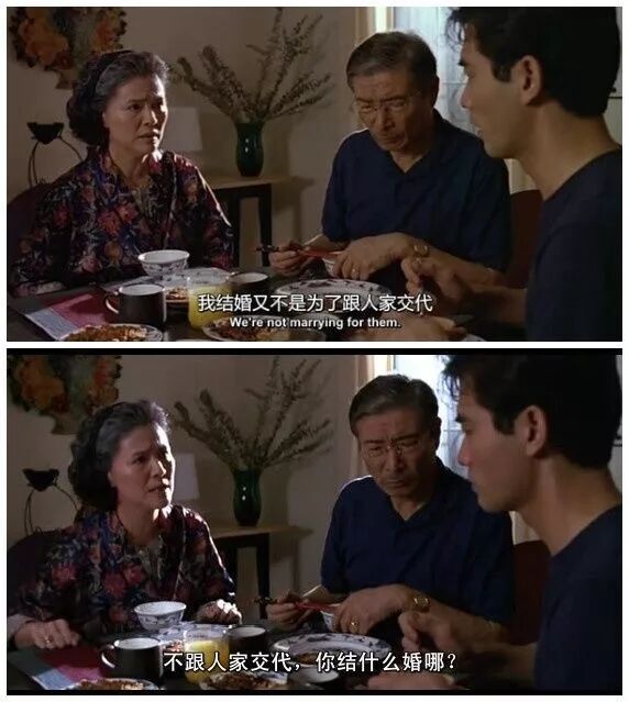 我以前其实蛮憎恶这些传统,但是再看一遍的时候,又觉得它讲的不仅是一种传统而已,它讲的是两代人是两种社会形态下价值观的差异和交锋,而对此我们不该逃避,而是正视它的存在。