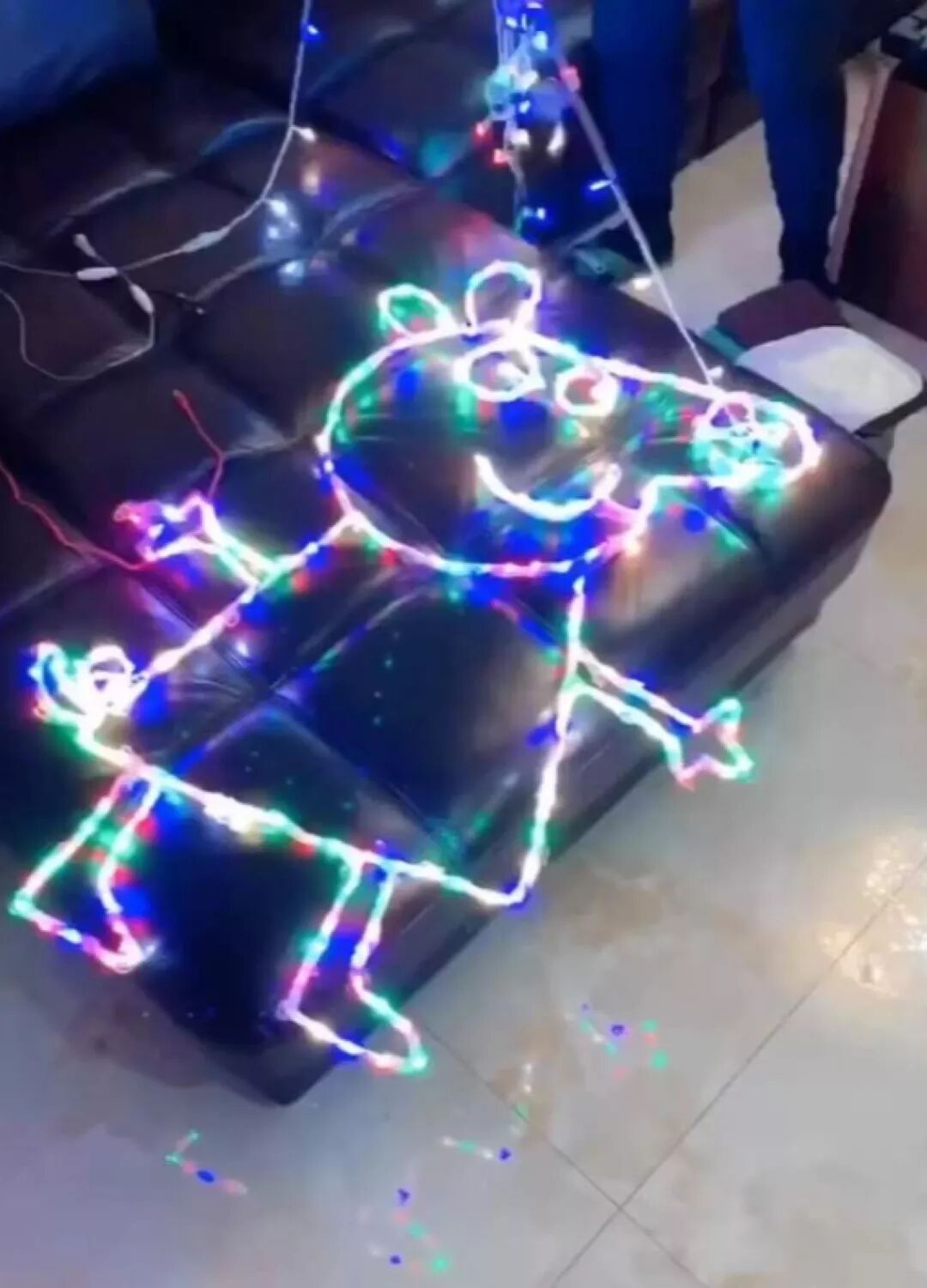 还有硬核爷爷大年三十,耗时5个小时,用铁丝给两个孙女做了一个彩灯佩琦。