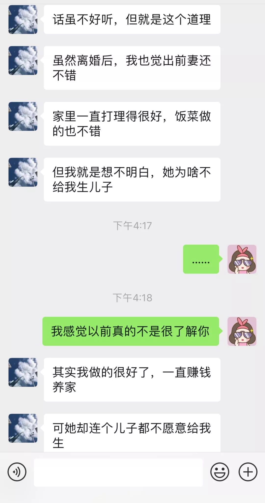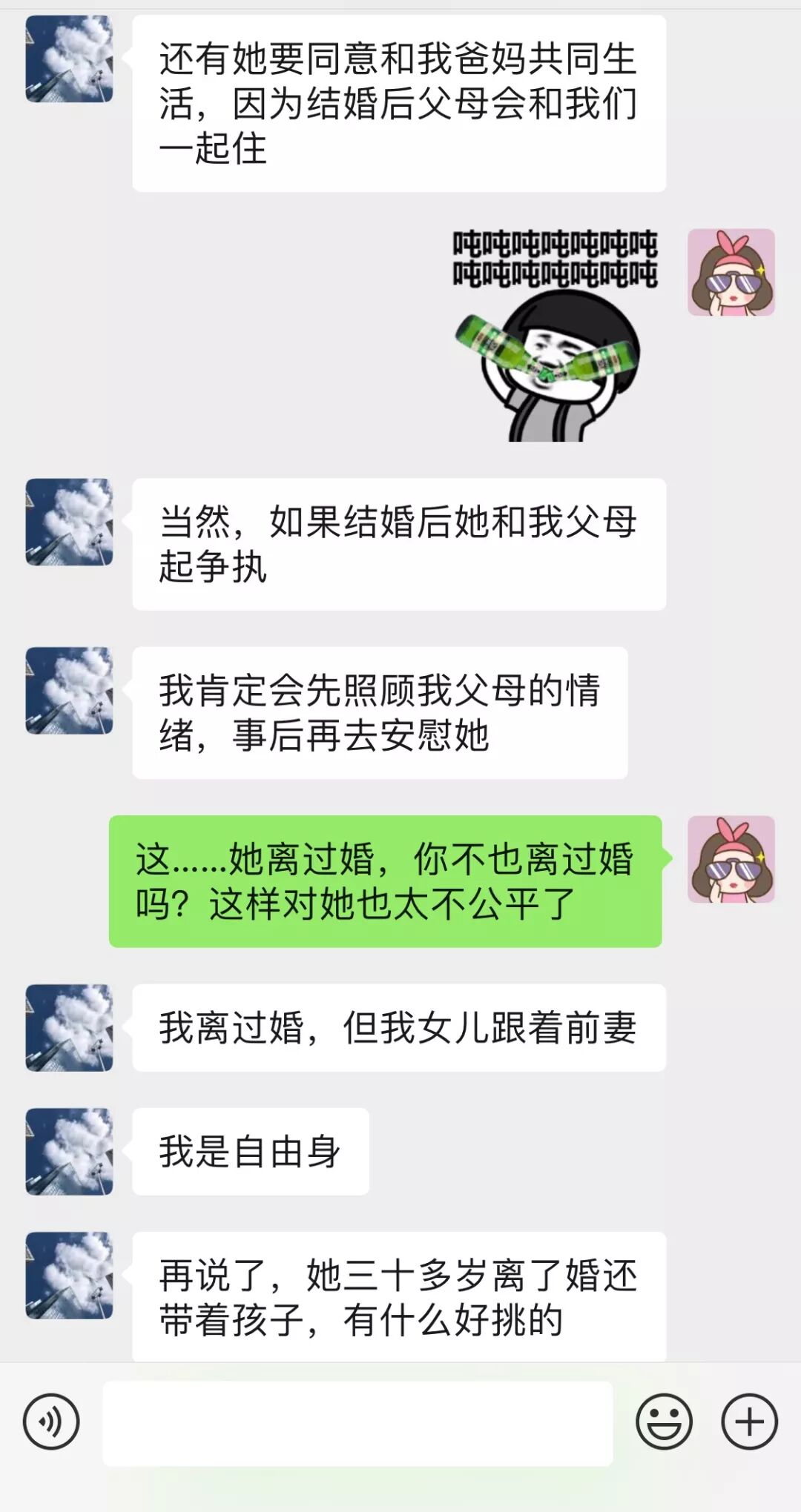 - 37岁离婚男相亲聊天记录曝光:我月薪2万,娶个老婆生儿子怎么了?!