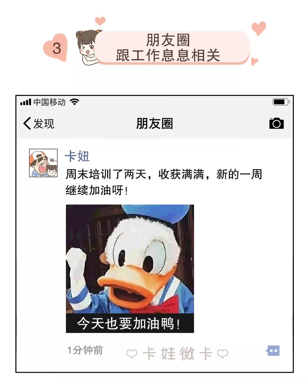 朋友圈多是工作和学习内容的女人,有着独立的品格和追求,对工作认真负责,充满干劲,对学习也保持着热忱和渴求。虽然忙碌于工作,却也热爱生活,做事的时候认真努力,玩的时候放得开玩。
