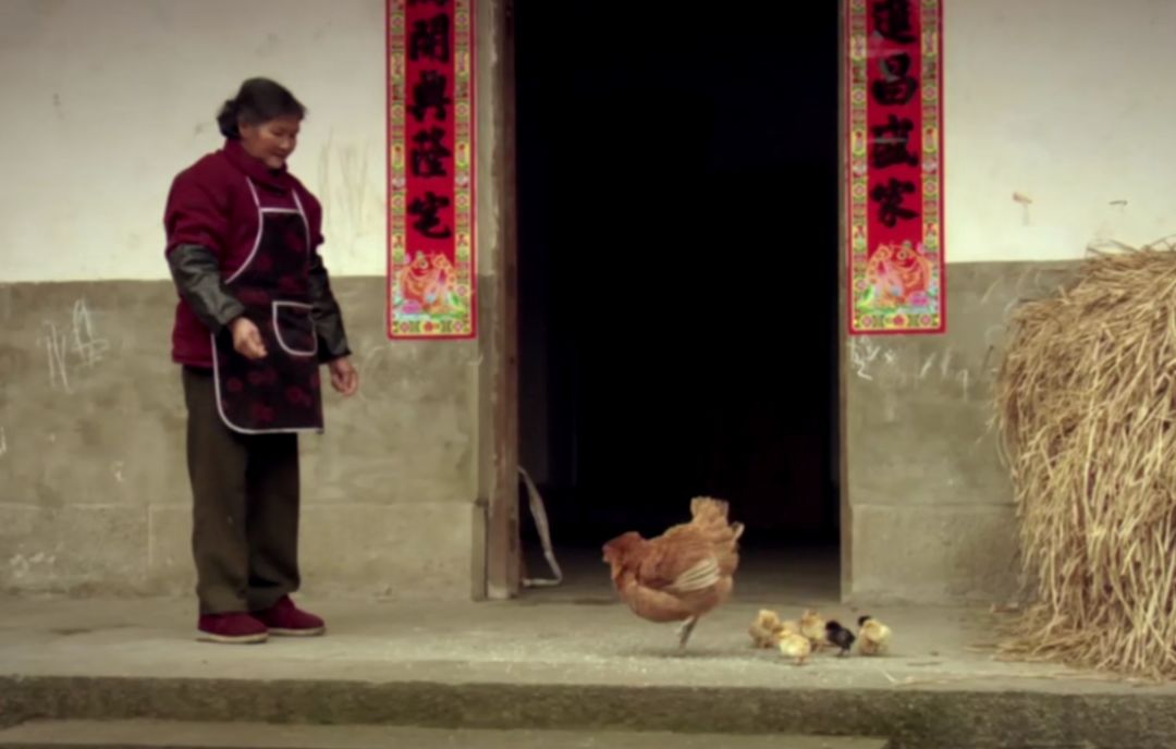 第二日,奶奶起来喂鸡,家门口贴着的对联与刺骨的现实对比,让人不忍。