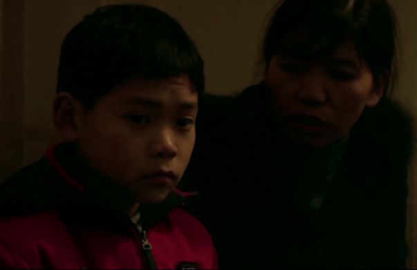 在黑夜里,在喧嚣中,母亲再一次崩溃哭泣,以手掩面。