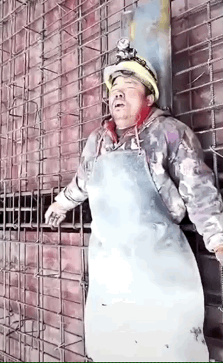 这是一位在建筑工地工作的父亲,长时间的工作让他全身酸痛,只能在工作间隙稍微休息一小会儿。