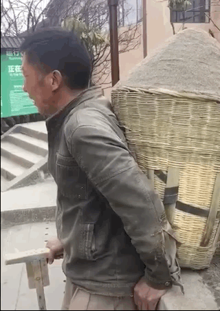 这位中年父亲是一位挑山工,他的工作是挑着200斤重的沙子徒步上山。
