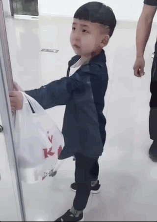 一位妈妈陪完孩子,就要返回工作岗位了,当候车厅的门关上之后,孩子一边哭泣一边紧紧地抓住门把手。