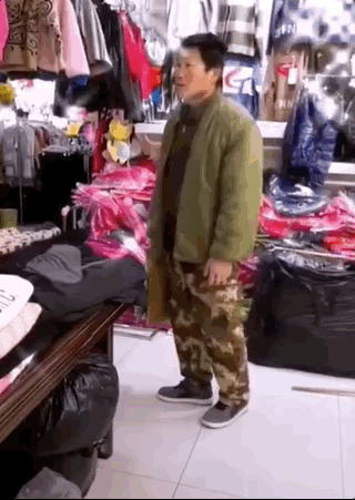 或许是好久都没有来商场逛过,店里的衣服让他有点眼花缭乱,不知所措。