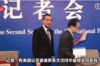 在记者会结束时,有记者朝准备离场的王毅大声提问:“有美国议员邀请蔡英文访问华盛顿,能同意吗?”