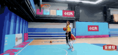 有一次买超带张嘉妮去打篮球,大直男一看到篮球就两眼发光,他想把老婆训练成小兄弟,鼓励她投篮。