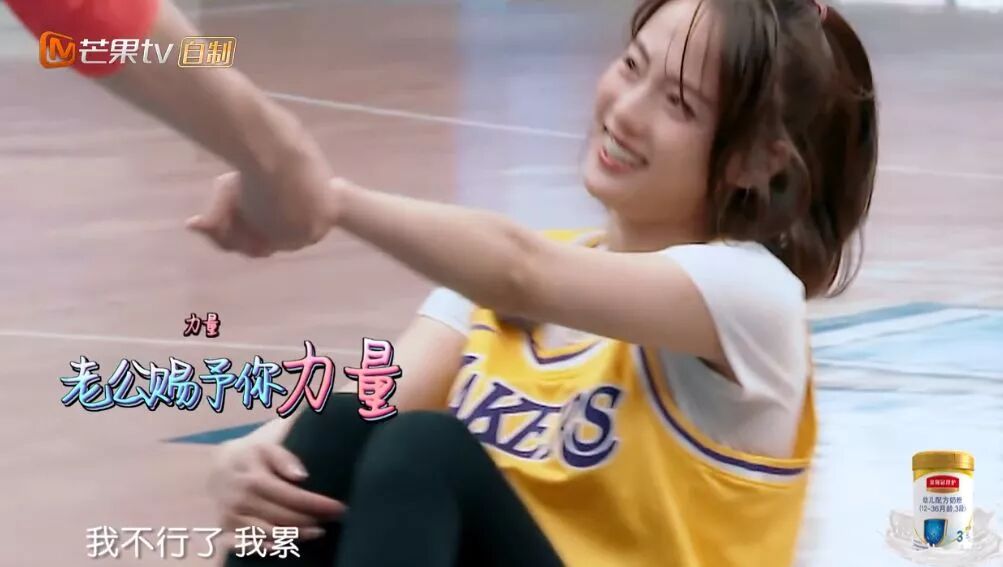 但是张嘉倪的反应非常可爱,直接一屁股坐在地上,耍赖不起来了,像小女生一样撒娇:“你怎么这样,太难了,我手酸了”。