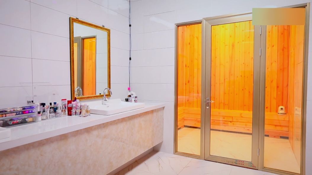 看了一眼,也就跟我的客厅一样大吧,还带桑拿室,养生女孩爱惨了。