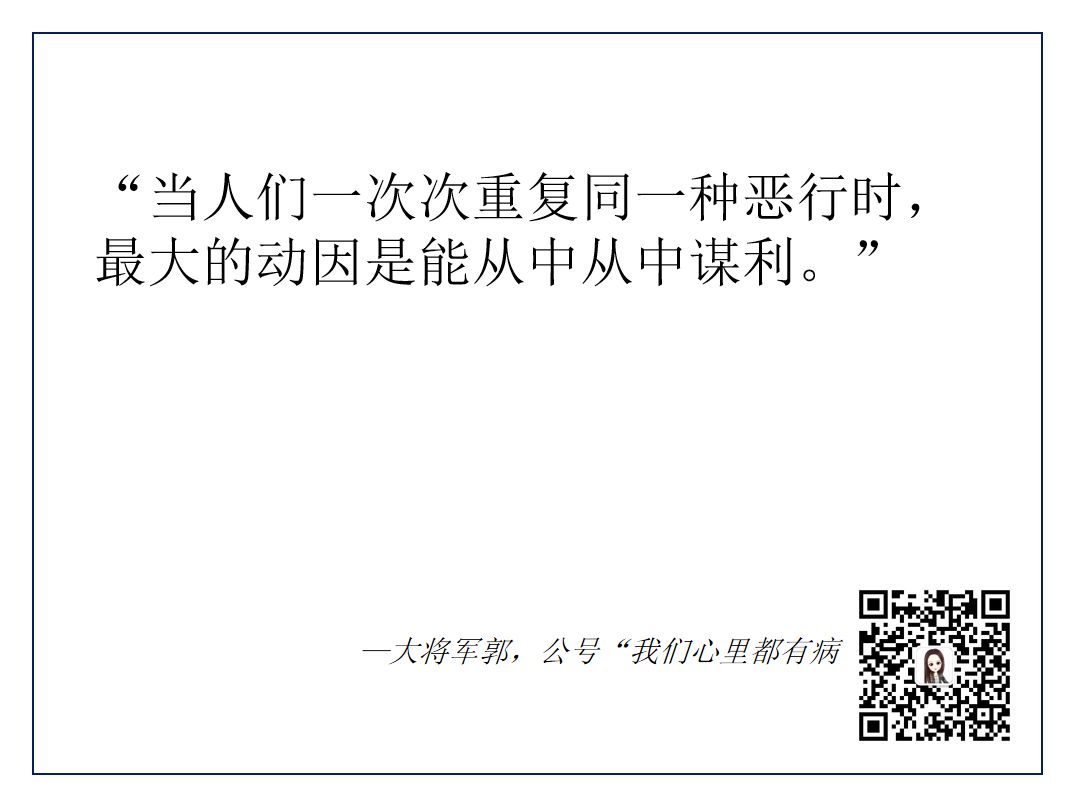 - 当人们一次次重复同一种恶行时,最大的动因是能从中从中谋利。