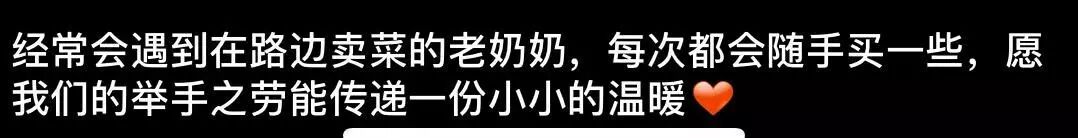 下班后的她也会照顾马路上卖蔬菜的老奶奶,十分有爱心。