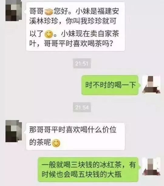 和很多人一样,「卖茶小妹」第一次加我的理由大概是: