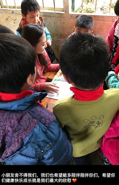 可别忘了,她又很接地气。只要休息的时间,都会抽空去山区支教,为孩子们精心准备礼物。
