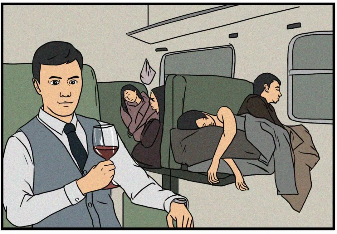 途中,你该在众人睡得东倒西歪的时候,手端一杯82年的拉菲(实际为车站买的葡萄汁),小嘬一口,在异味中品尝芬芳。