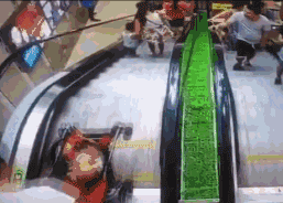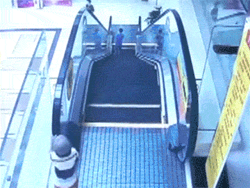 孩子一旦自己跑到自动扶梯处玩耍,悲剧随时都可能发生!