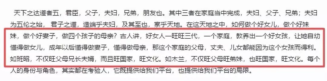 “古人讲,好女人一旺旺三代。一个好女孩,要自幼懂得做女儿,成年后懂得做妻子和母亲,那这个家庭的丈夫、儿女都能因这个女孩儿得力。”