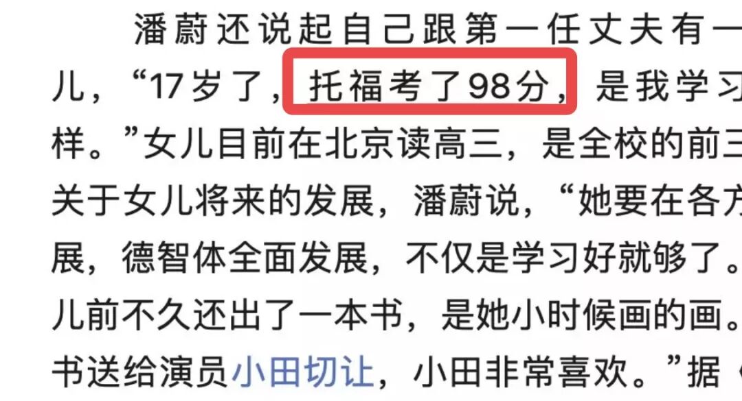 潘蔚自称是想把国学理念传递给孩子。可别忘了,潘蔚自己也有亲生女儿,在17岁时,托福就考了98分。高中读的是北京四中,年级前三,随后出国留学。