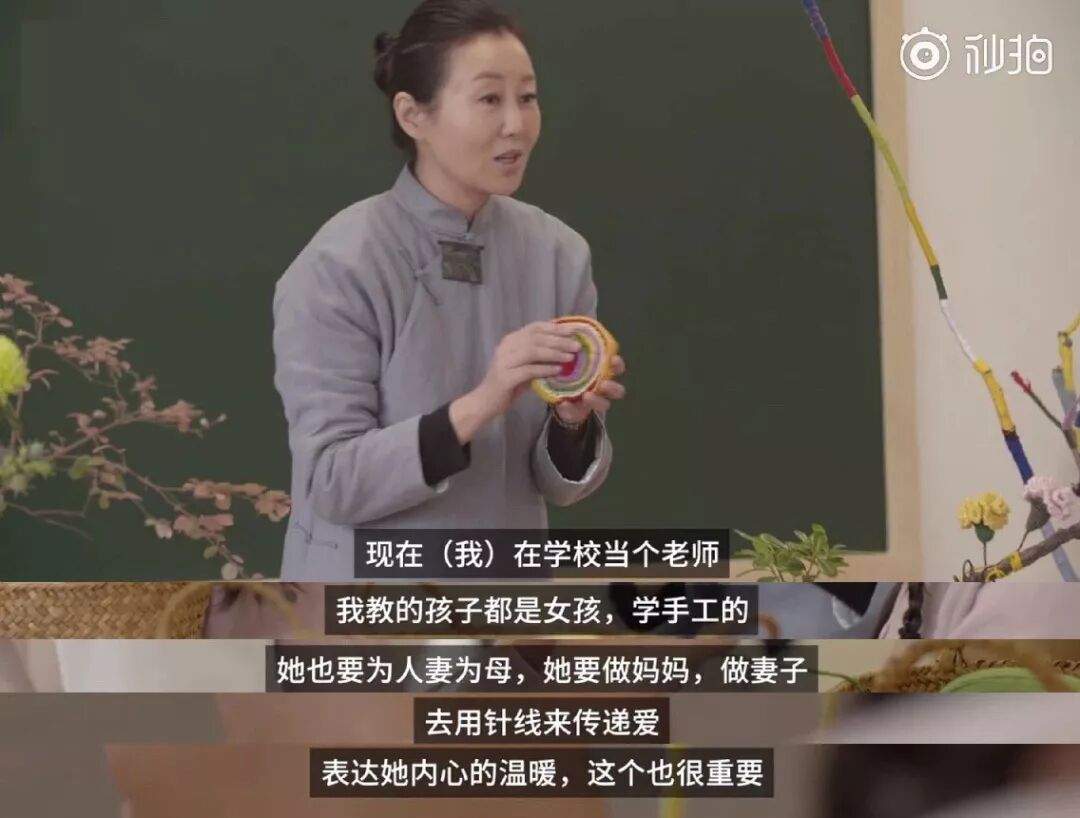 潘蔚同时是华夏学宫的“女红”老师,平日里教学生绣绣花,织织毛衣。在她眼中,“女孩迟早要为人妻为人母,她们要学会用针线来传递爱。”