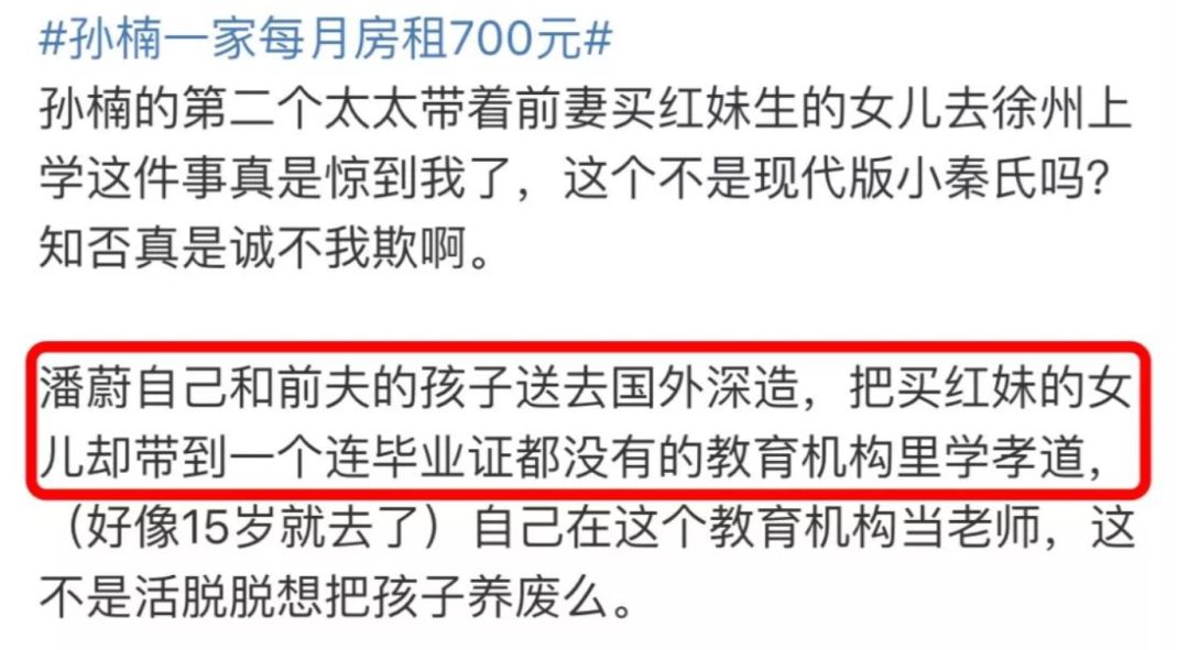 在视频中:孙楠和现任妻子潘蔚,“为了孩子的教育”,举家从北京搬到徐州,租住在100平左右的居民房中,月租只要700元。