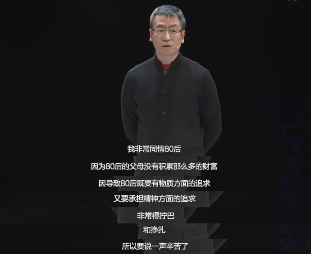 “因为80后的父母没有积累那么多的财富,导致80后既要有物质方面的追求,又要承担精神方面的追求,非常的拧巴和挣扎,我要对他们说一声辛苦了。”