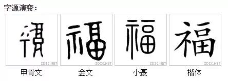 按照拆字法,“示”近“衣”,“畐”为“一口田”。而“畐”的“一”又可解为屋子的“横梁”,代表家;“口”,代表人丁;“田”,代表土地口粮。丰衣足食、人丁兴旺,即为福。