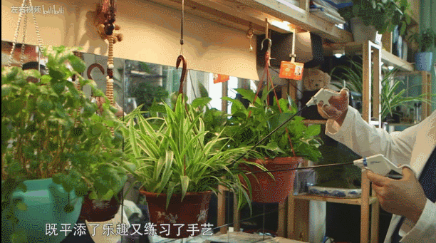 生活中,用长长的手术刀,修剪盆栽。