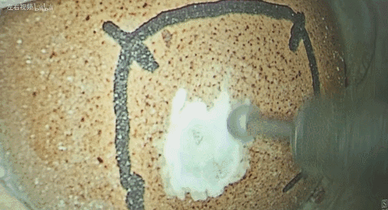 用生鸡蛋模拟脑部肿瘤,用磨钻进行外壳研磨。