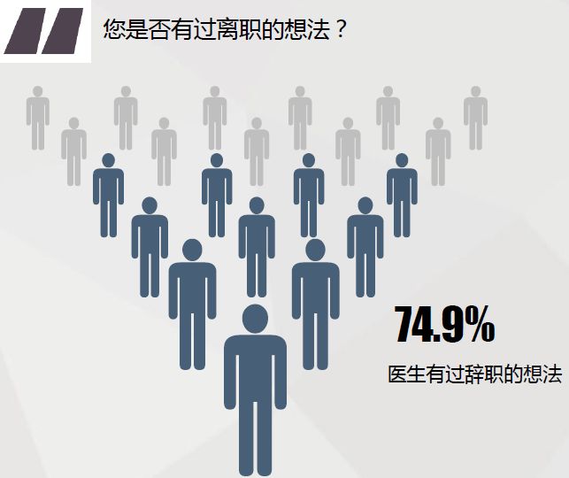 医米调研一项“医院人力资源现状调研报告”显示,74.9%的医生都有过辞职想法。