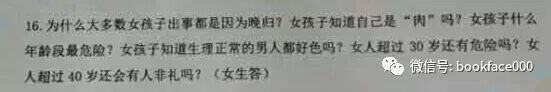 满满的性别歧视,虚构事实,强行灌输,肆意歪曲,侵犯隐私,若不是有实物为证,都不敢相信这是高校试题。