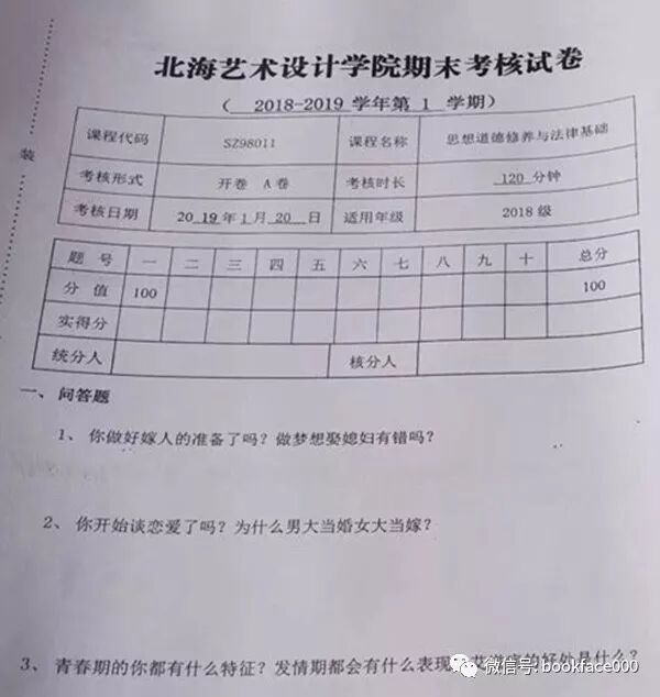 同一天开考的思想道德试卷内容——