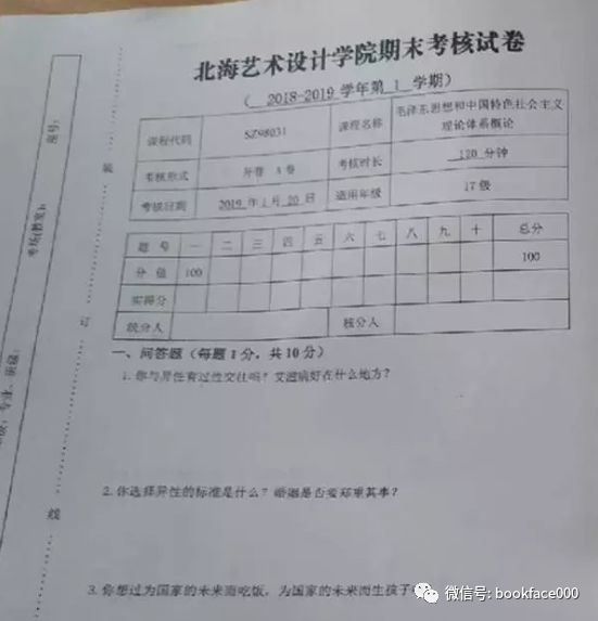 - 年底了,要放假了,不过很多小菠菜放假前都要过一关:期末考。 最近有一所高校因为试题太过「叩击灵魂」,火了。 北海艺术设计学院,简称「北艺」,位于广西北海市,是一所经教育部批准的艺术设计类二本院校。 以