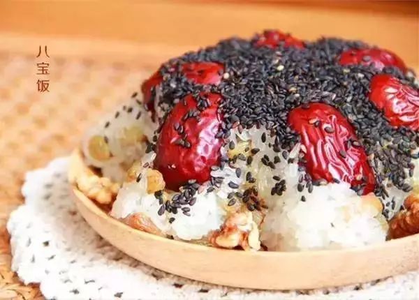 民间有大寒节气吃糯米的说法,因为糯米能够补养人体正气,吃了后会周身发热,起到御寒、养胃、滋补的作用。而糯米制作的食品,最典型的就是八宝饭。糯米蒸熟,拌以糖、猪油、桂花,倒入装有红枣、薏米、莲子、桂圆肉等果料的器具内,蒸熟后再浇上糖卤汁即成。味道甜美,是节日和待客佳品。