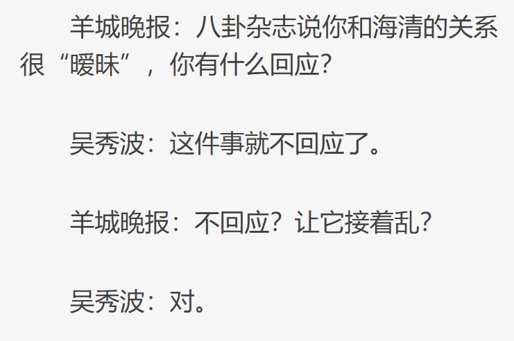 而面对这些不辨真假的绯闻,吴秀波却故意给了一个暧昧不明的态度: